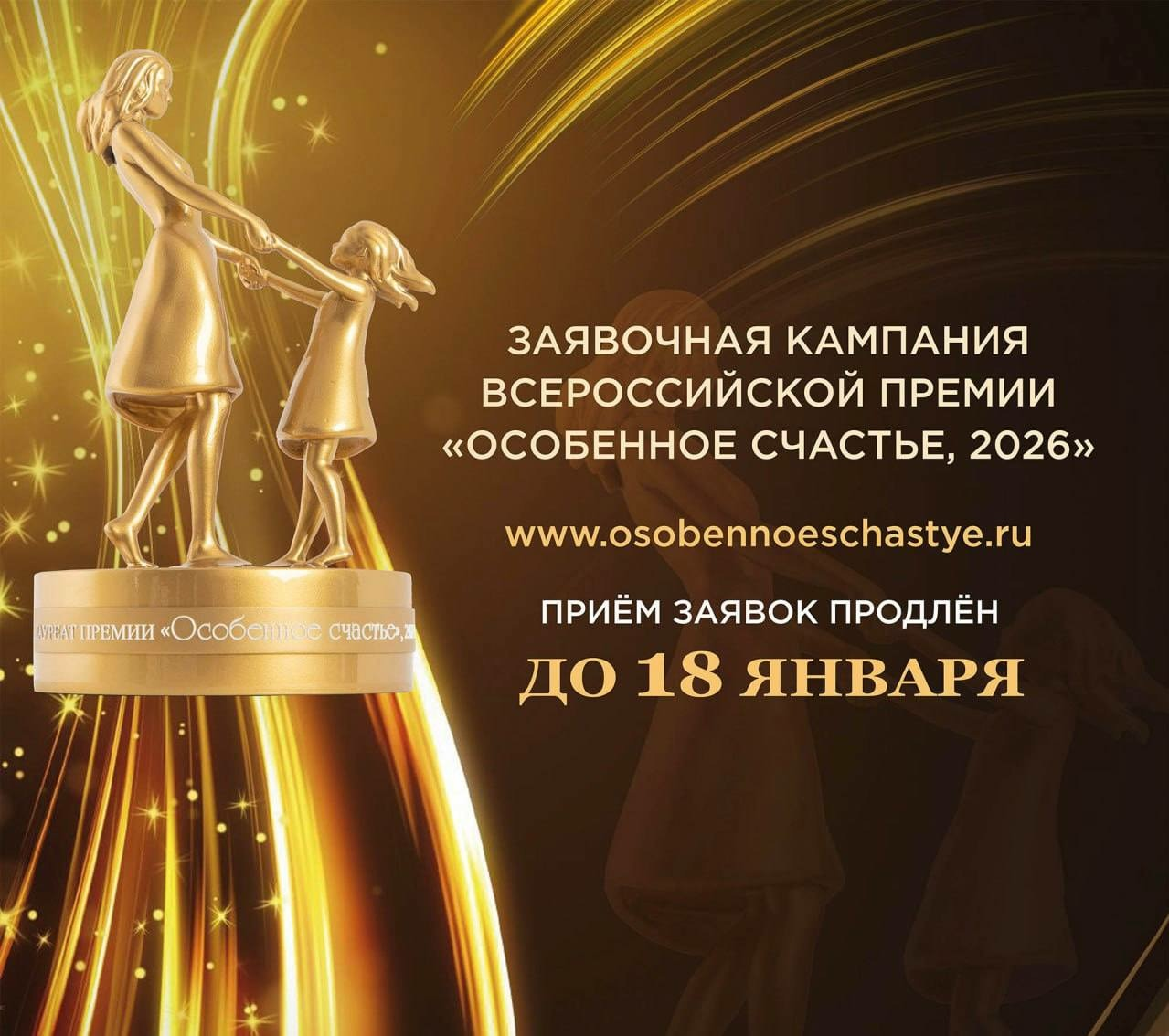 📨В связи с большим количеством вопросов, а также пожеланиями в адрес организационного комитета об увеличении срока приёма документов на Премию «Особенное счастье, 2026» сообщаем: ✅приём заявок продлён ещё на неделю, до 18 января!